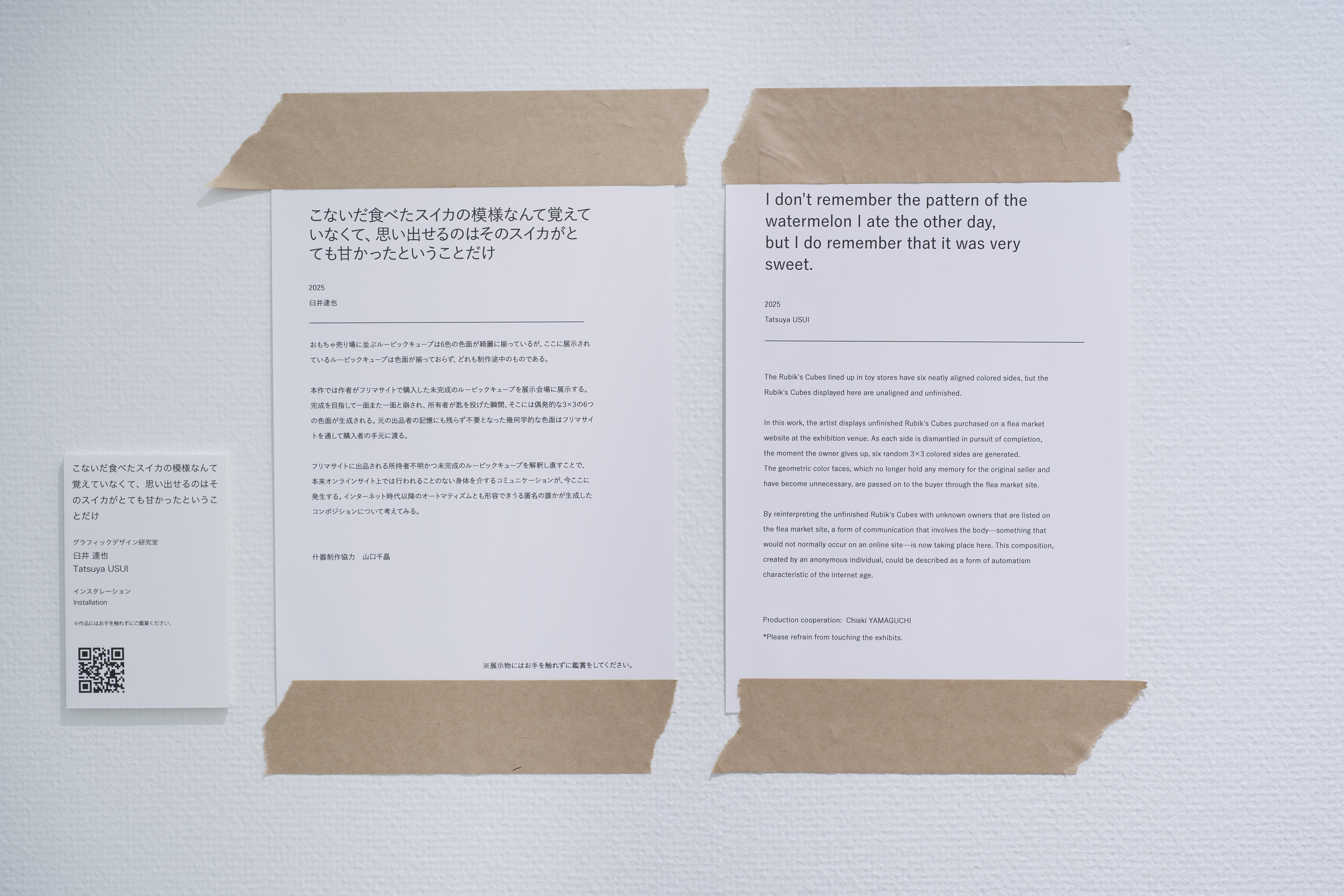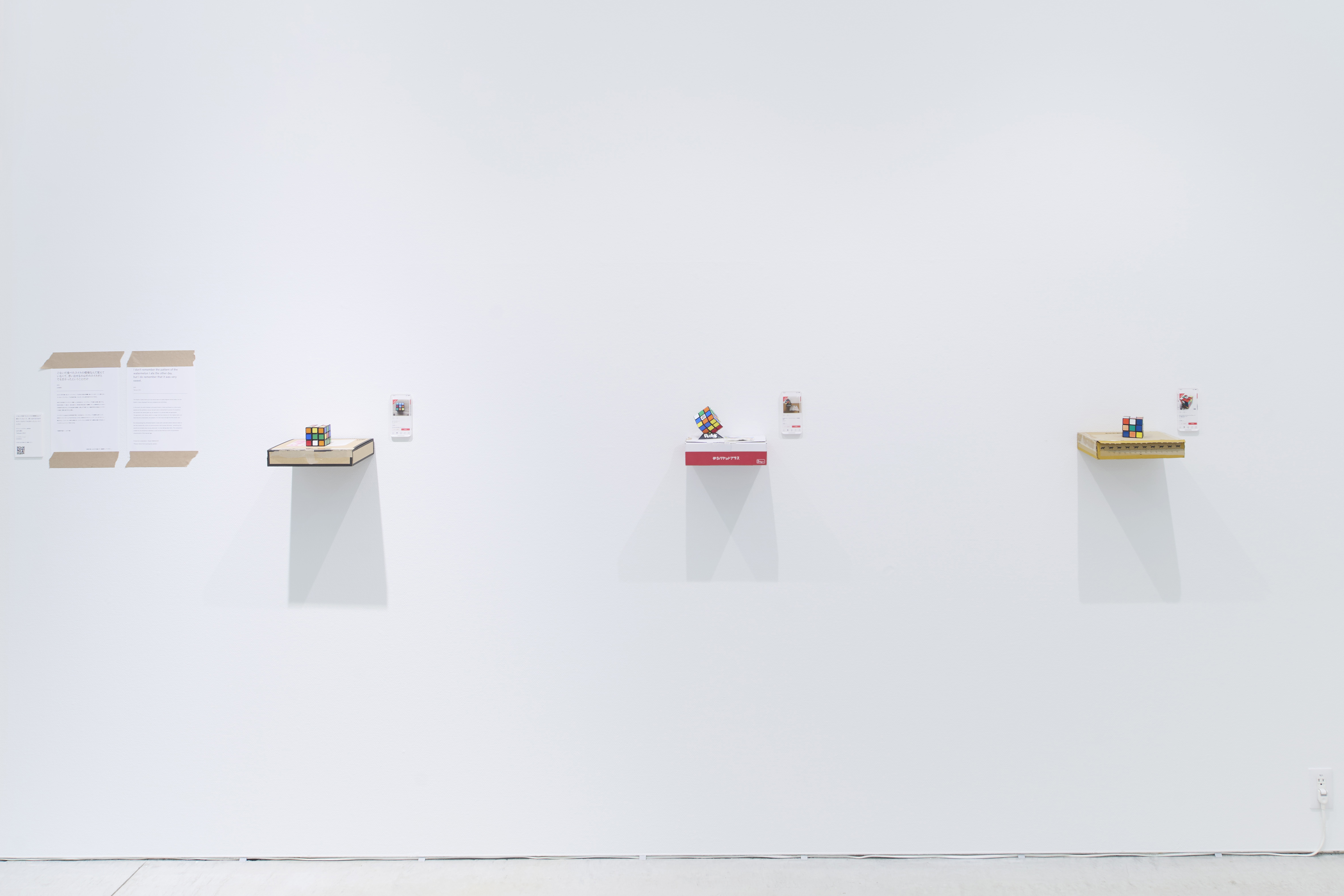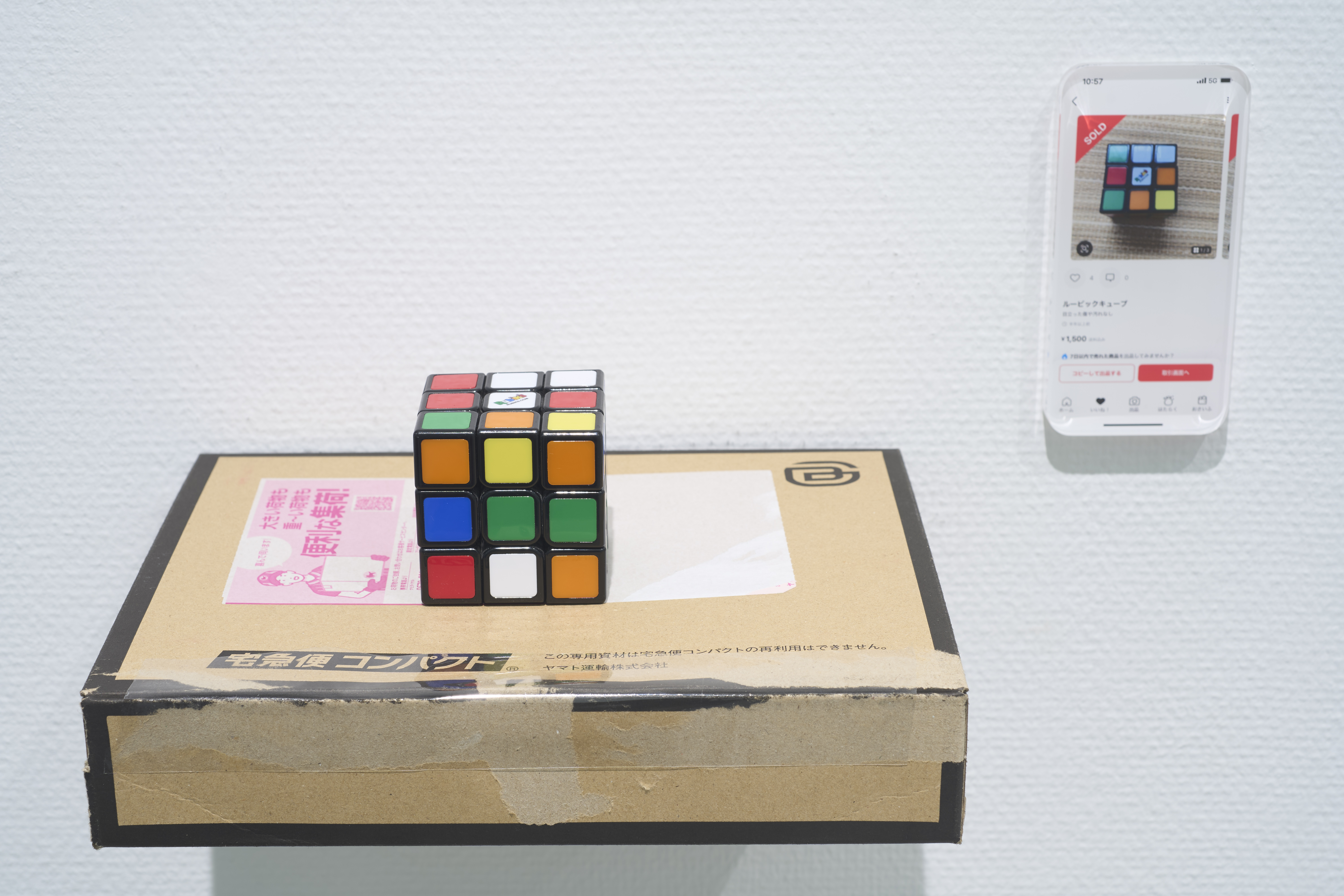 本作では作者がフリマサイトで購入した未完成のルービックキューブを展示会場に展示する。